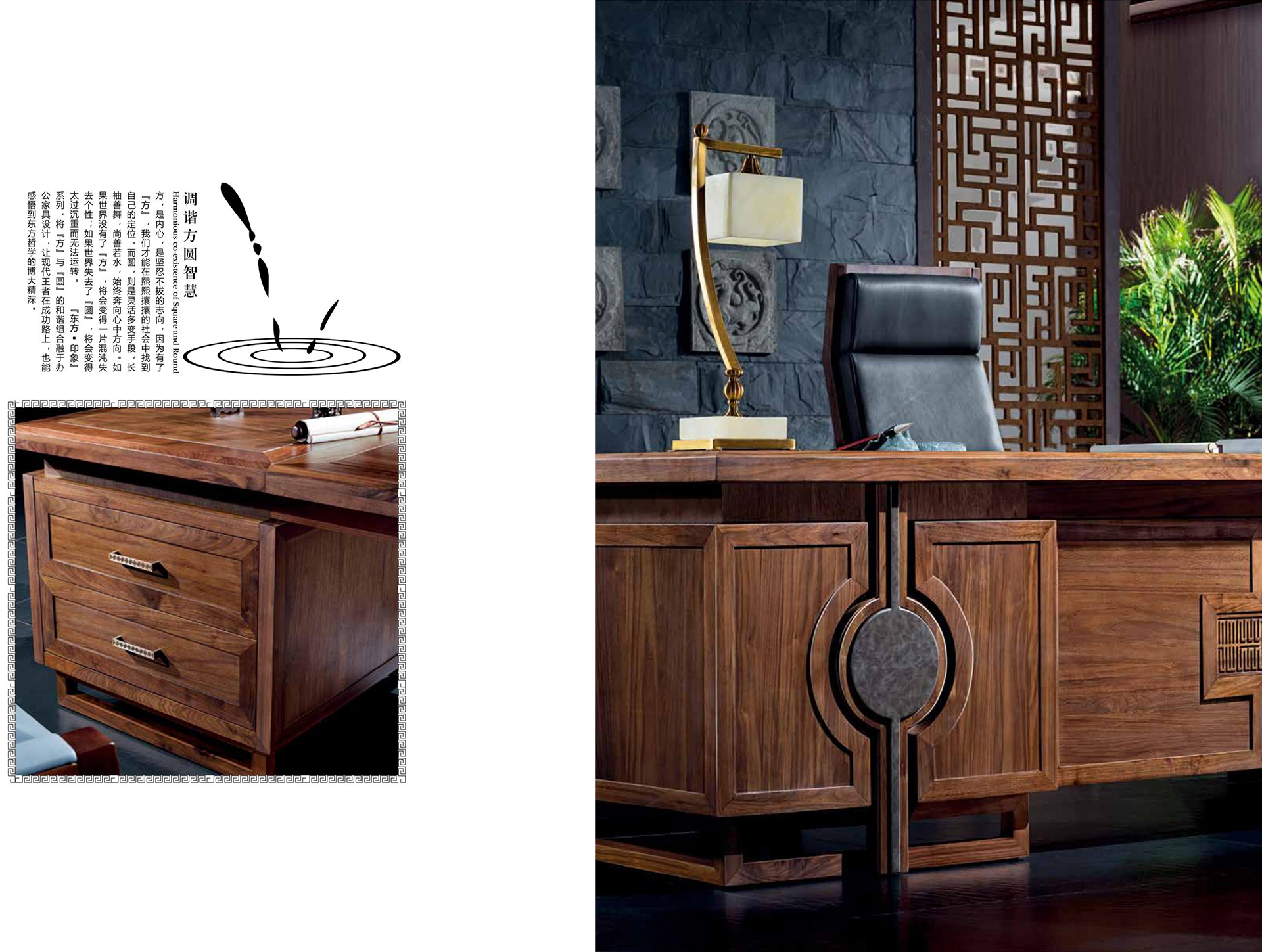 方“是内心“是坚忍不拔的志向“因为有了【方】我们才能在熙熙攘攘的社会中找到自己的定位“而圆“则是灵活多变手段“长袖善舞·尚善若水·始终奔向心中方向“如果世界没有了【方】将会变得一片混沌失去个性·如果世界失去了【圆】“将会变得太过沉重而无法运转“【东方·印象】系列 将【方】与【圆】的和谐组合融于办公家具设计“让现代王者在成功路上“也能感悟到东方哲学的博大精深。